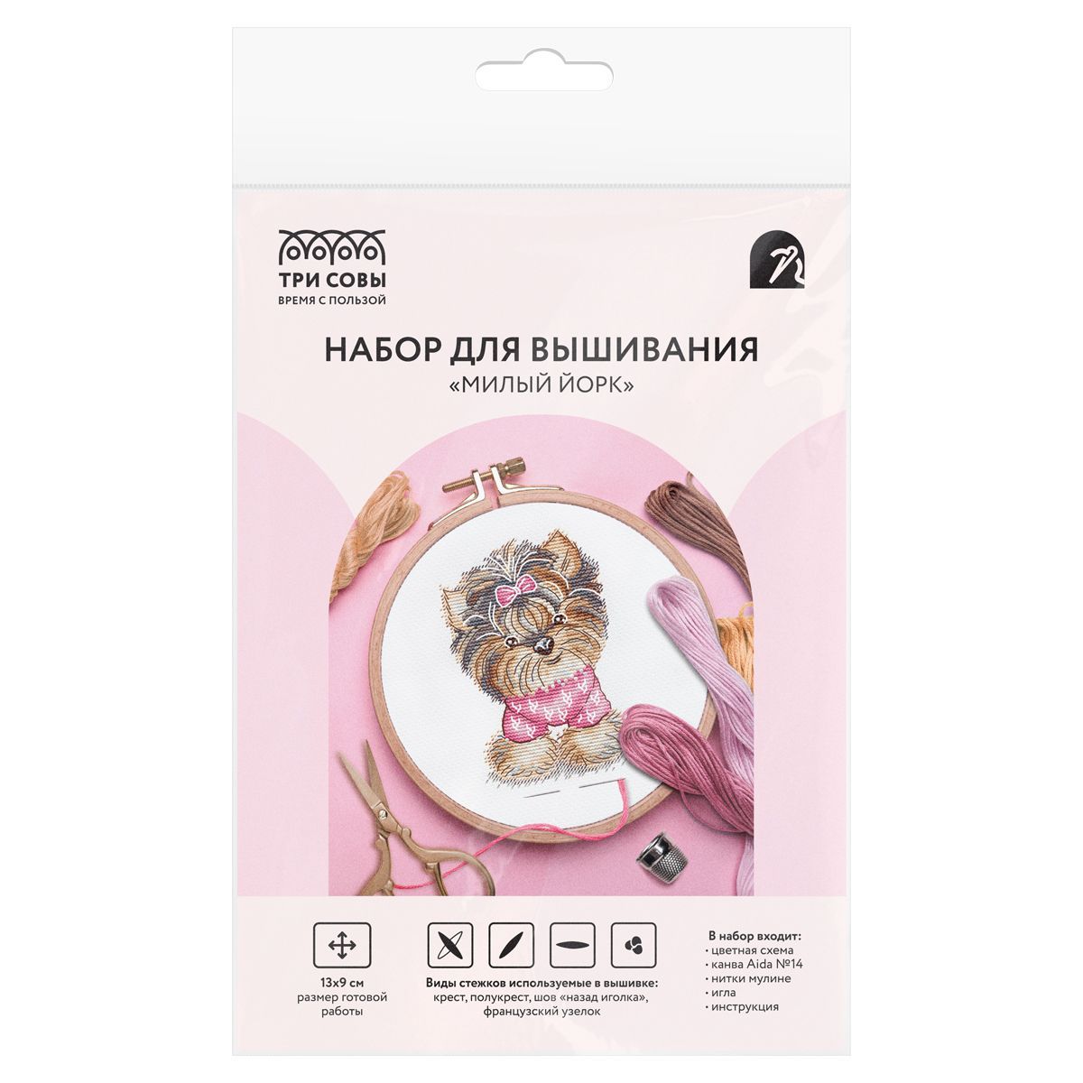 Набор для вышивания крестиком ТРИ СОВЫ "Милый Йорк", 13*9см, пакет с европодвесом