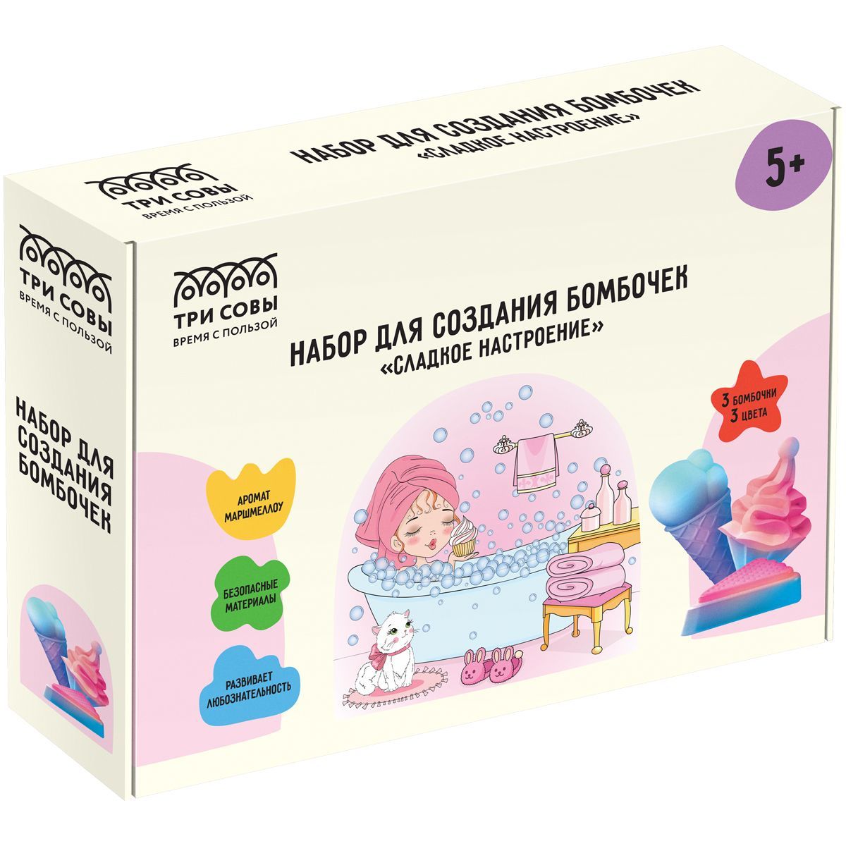 Набор для создания бомбочек 3в1 ТРИ СОВЫ "Сладкое настроение", 3 бомбочки, картонная коробка