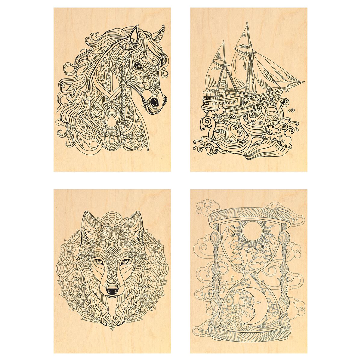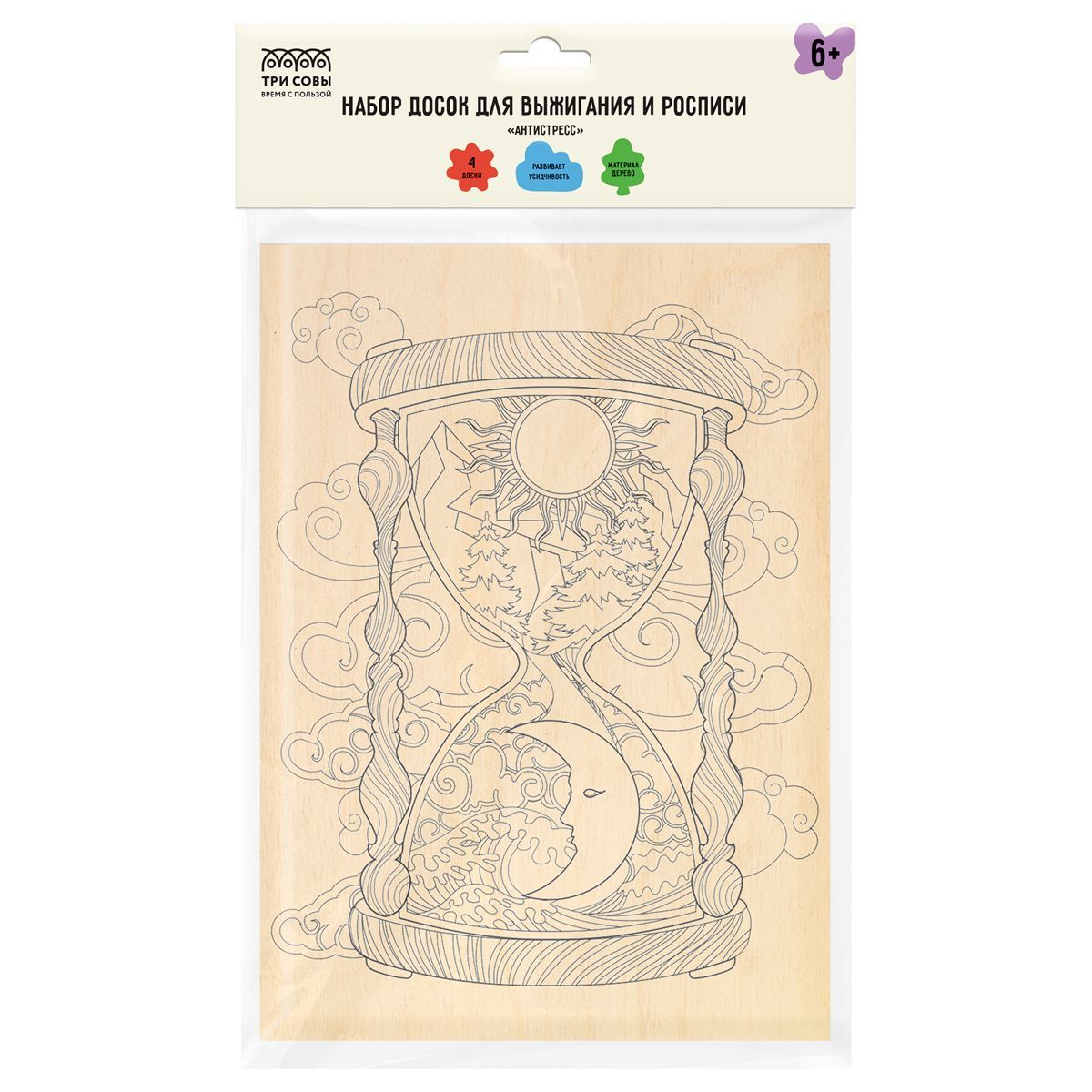 Набор досок для выжигания и росписи по дереву ТРИ СОВЫ "Антистресс", 4шт., 15*21см, пакет с европодвесом