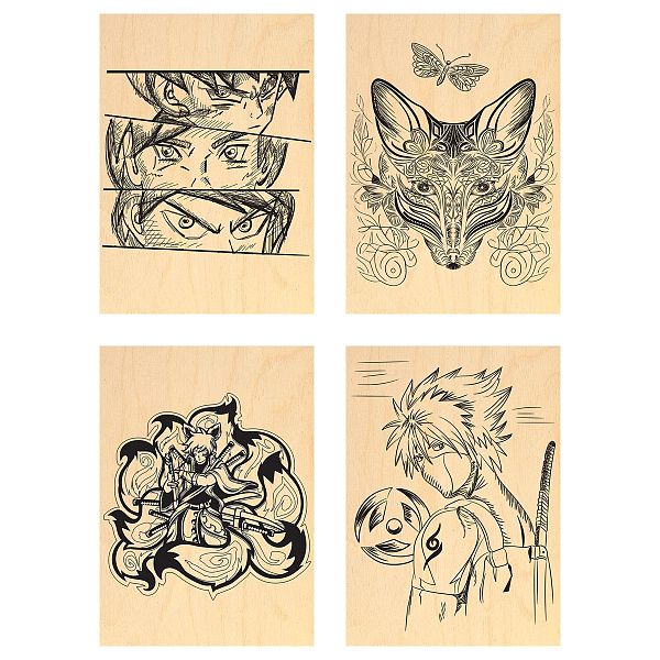 Для детей выжигание по дереву особенно полезно. Это творческое занятие развивает у них не только воображение, но и усидчивость, терпение, целеустремлённость, уверенные навыки мелкой моторики рук и пальцев. В наборе 4 прямоугольных основы из фанеры. Размер – 21,3*14,8 см. Упакован в пакет с европодвесом.