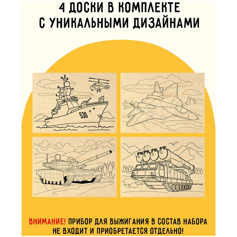 Набор досок для выжигания по дереву ТРИ СОВЫ "Военная техника", 4шт., 15*21см, пакет с европодвесом