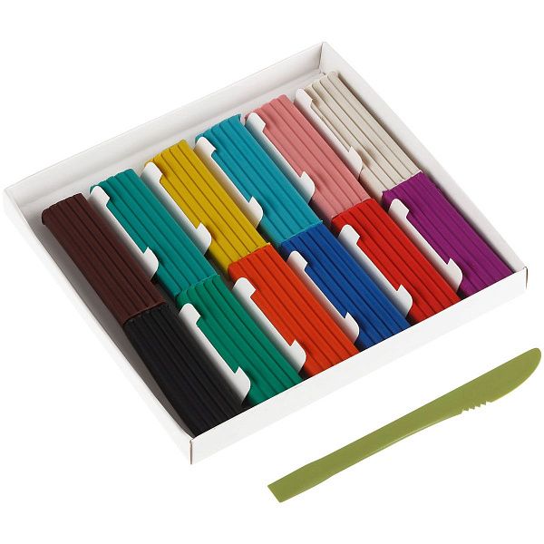 - Классический пластилин разных цветов и мягкости — для детских поделок и начального моделирования.