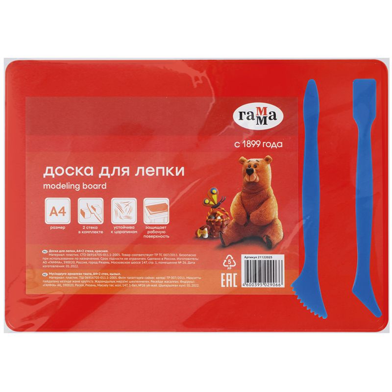 Доска для лепки Гамма, А4+2 стека, пластик, красный
