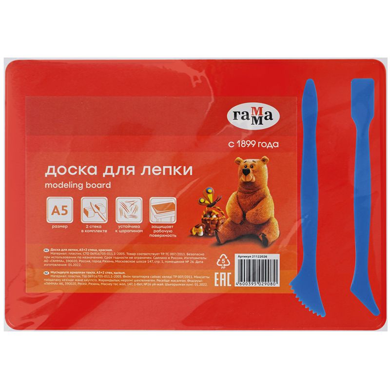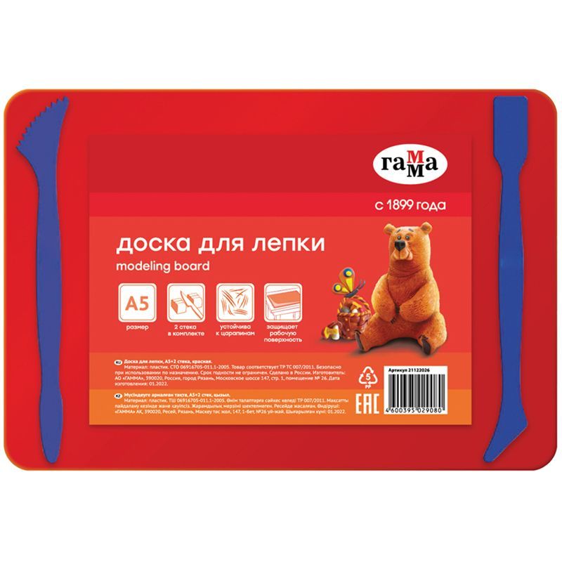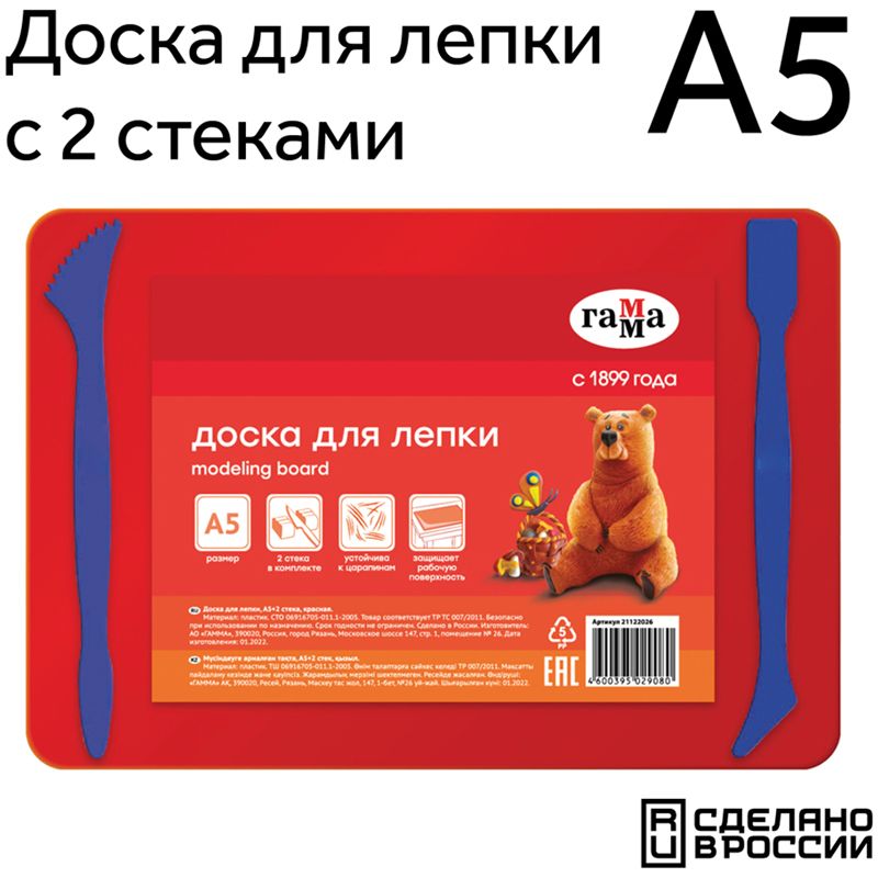 Доска для лепки Гамма, А5+2 стека, пластик, красный