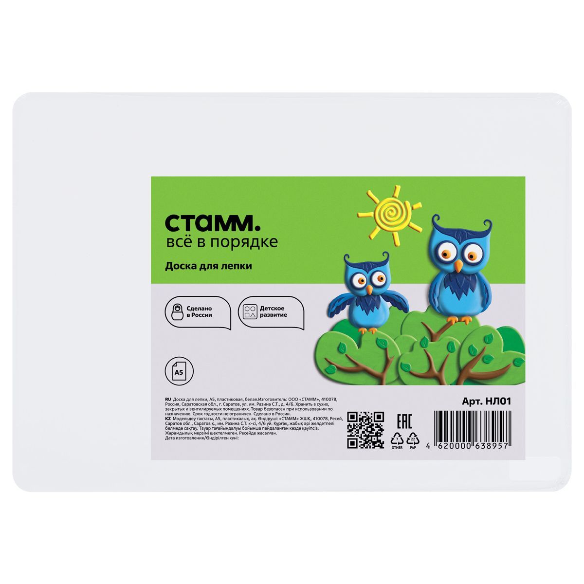 Доска для лепки СТАММ, А5, пластиковая, белая