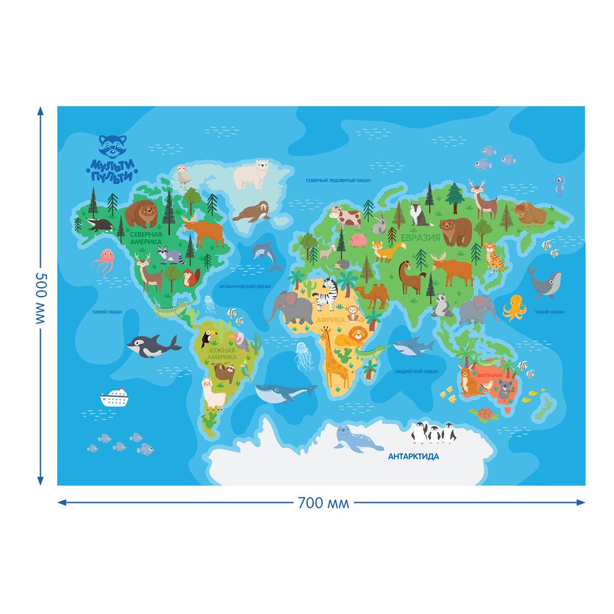Клеенка для уроков труда Мульти-Пульти "Карта мира", 50*70см, ПВХ