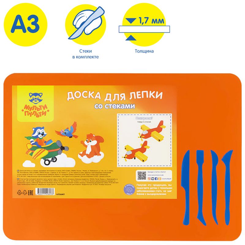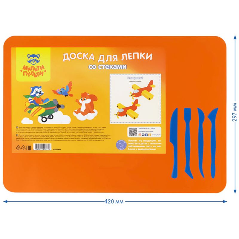 Набор для лепки Мульти-Пульти, доска А3+4 стека, пластик, оранжевый, пленка