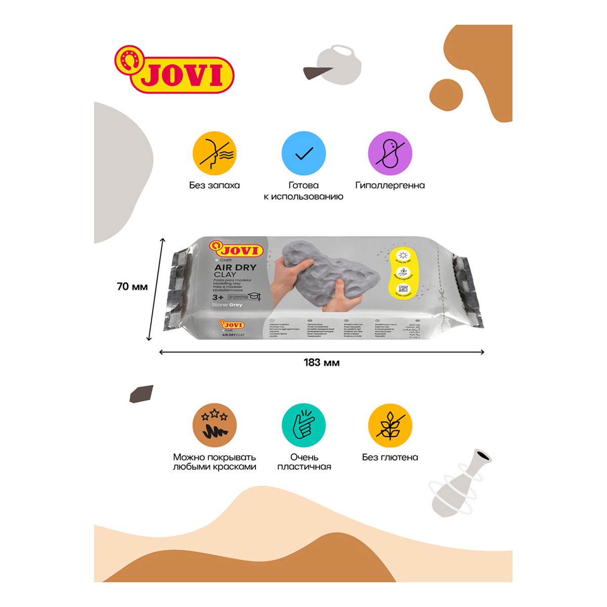 Паста для моделирования JOVI, отвердевающая, серый, 500г, вакуумный пакет