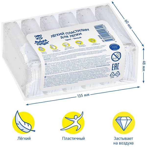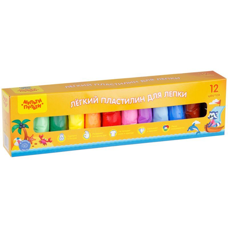 Легкий пластилин для лепки Мульти-Пульти, 12 цветов, 120г, картон