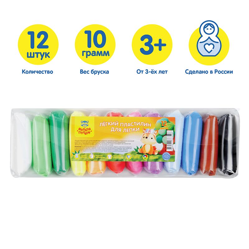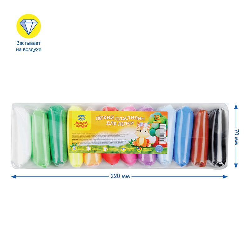 Легкий пластилин для лепки Мульти-Пульти, 12 цветов, 120г, прозрачный пакет
