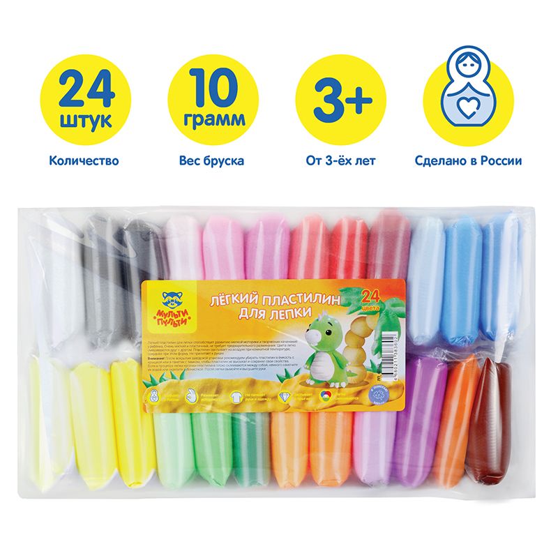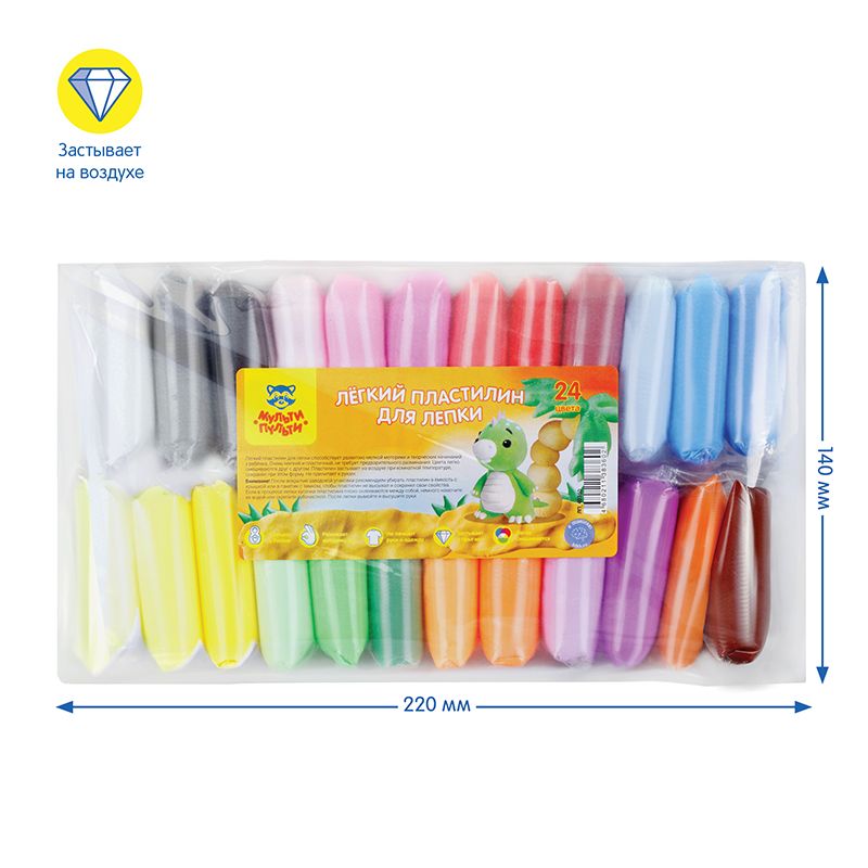 Легкий пластилин для лепки Мульти-Пульти, 24 цвета, 240г, прозрачный пакет