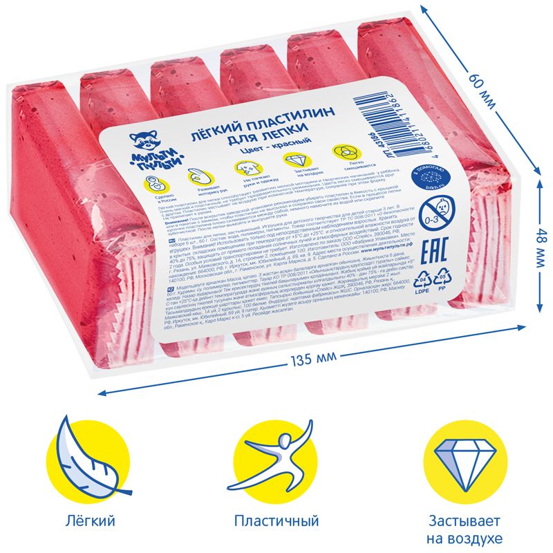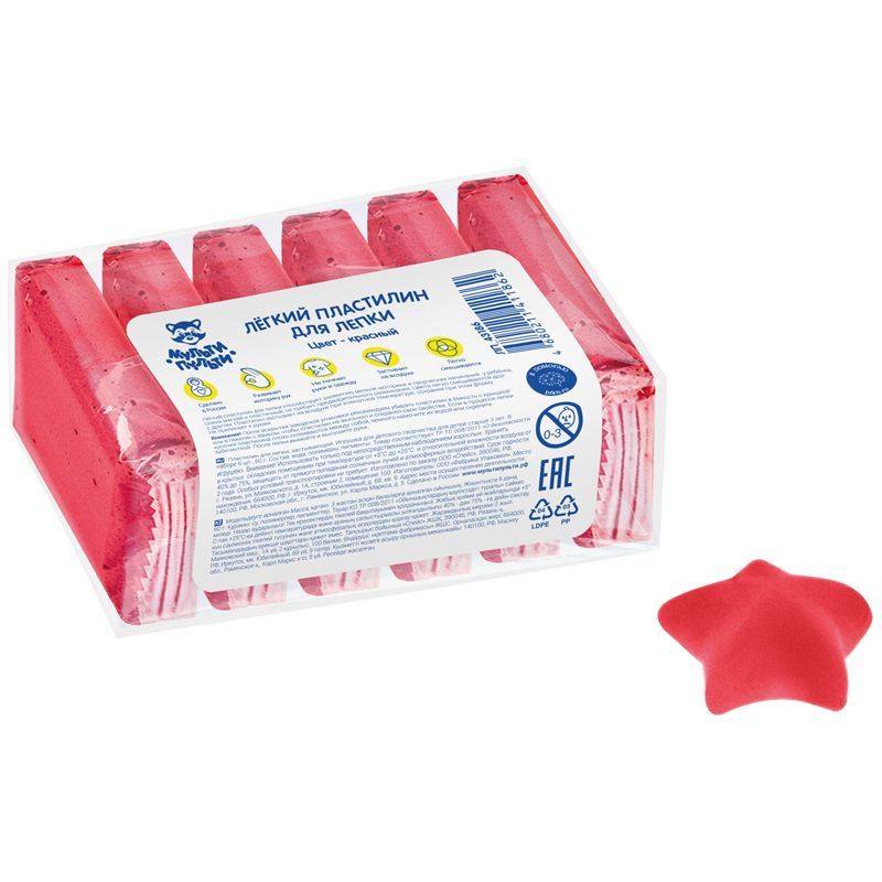 Легкий пластилин для лепки Мульти-Пульти, красный, 6шт., 60г, прозрачный пакет