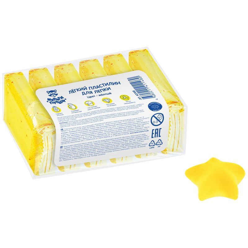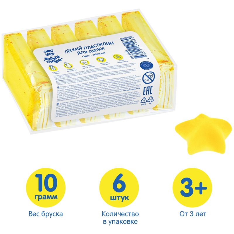 Легкий пластилин для лепки Мульти-Пульти, желтый, 6шт., 60г, прозрачный пакет