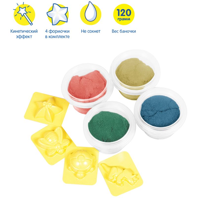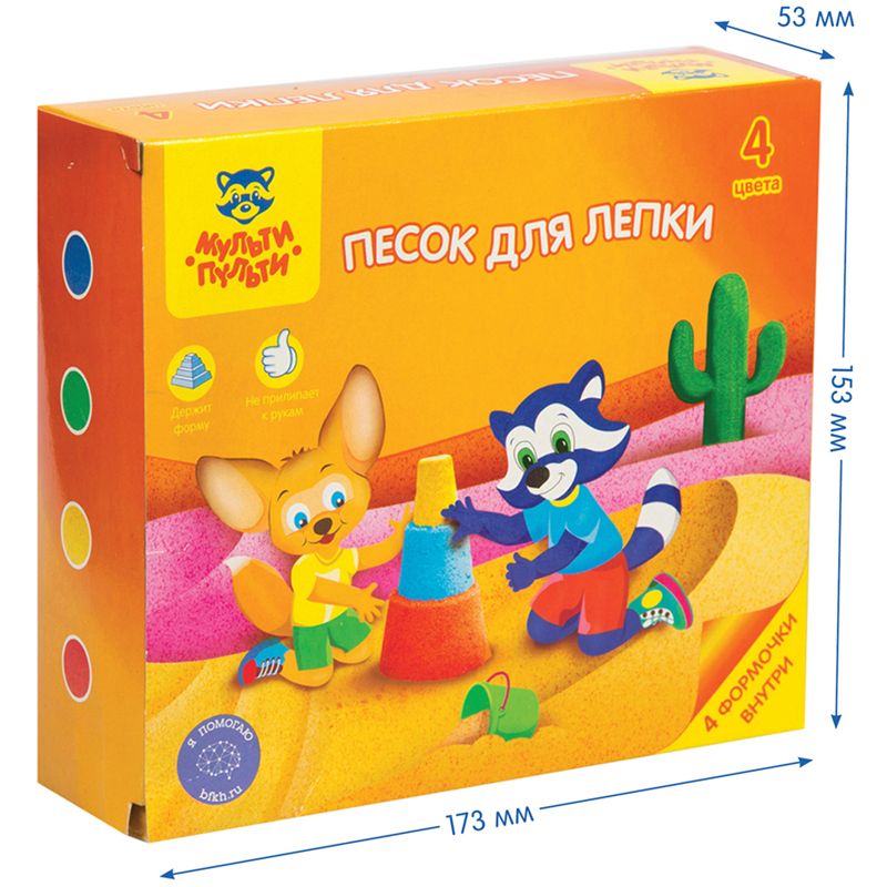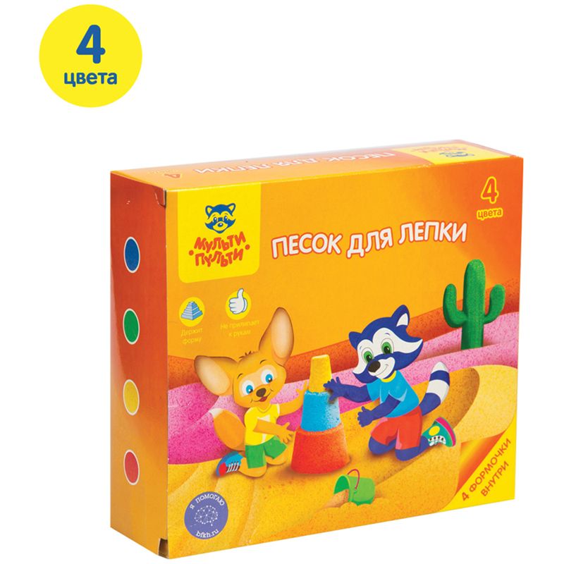 Песок для лепки Мульти-Пульти "Енот в пустыне", 4 цвета, 480г, в баночке, 4 формочки, карт. упаковка