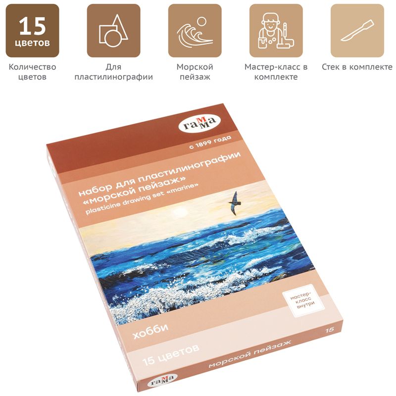 Набор для пластилинографии Гамма "Хобби. Морской пейзаж", 15 цветов, 390г, мастер-класс, стек, картон. упаковка, термоусадка