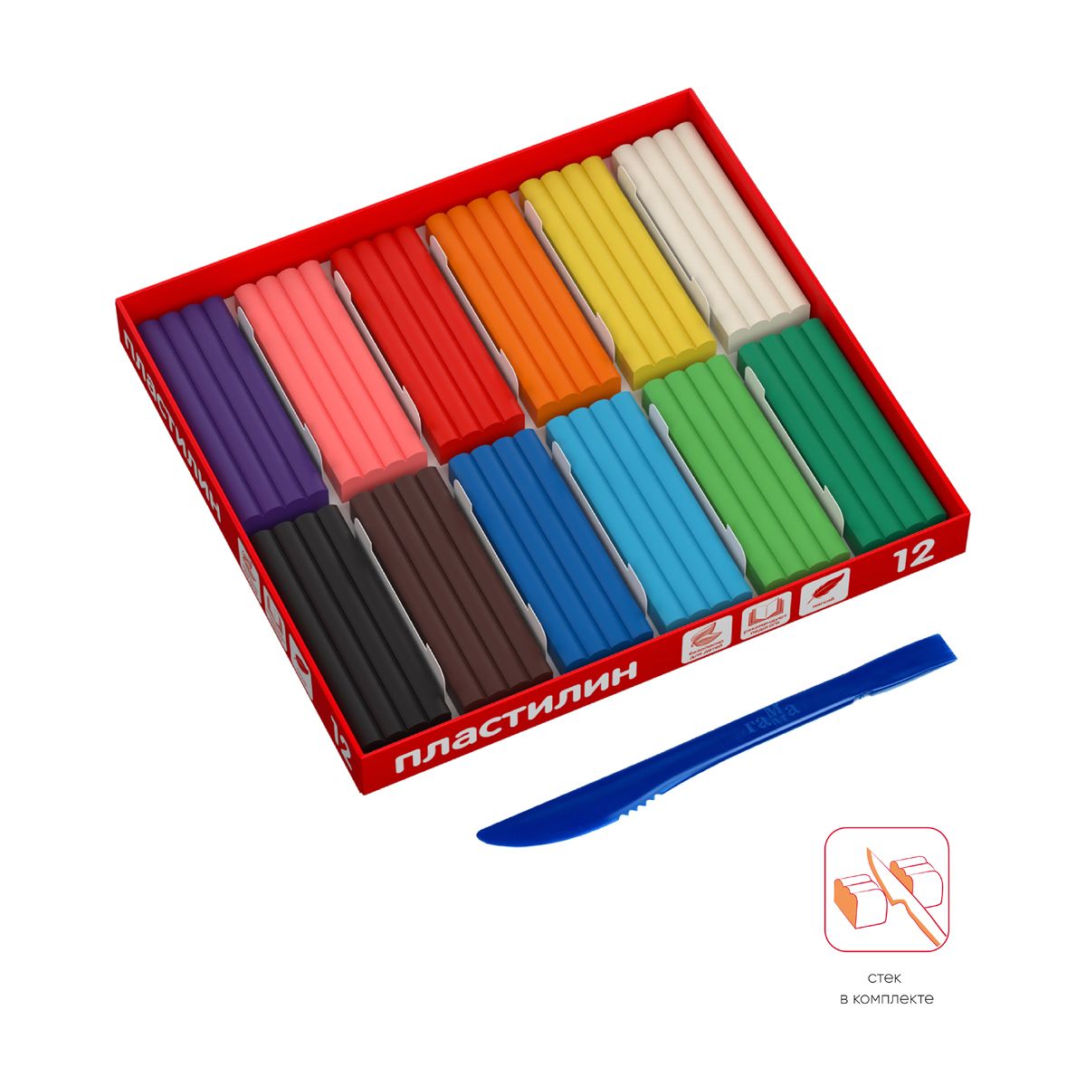 Пластилин Гамма, 12 цветов, 240г, со стеком, картон. упаковка