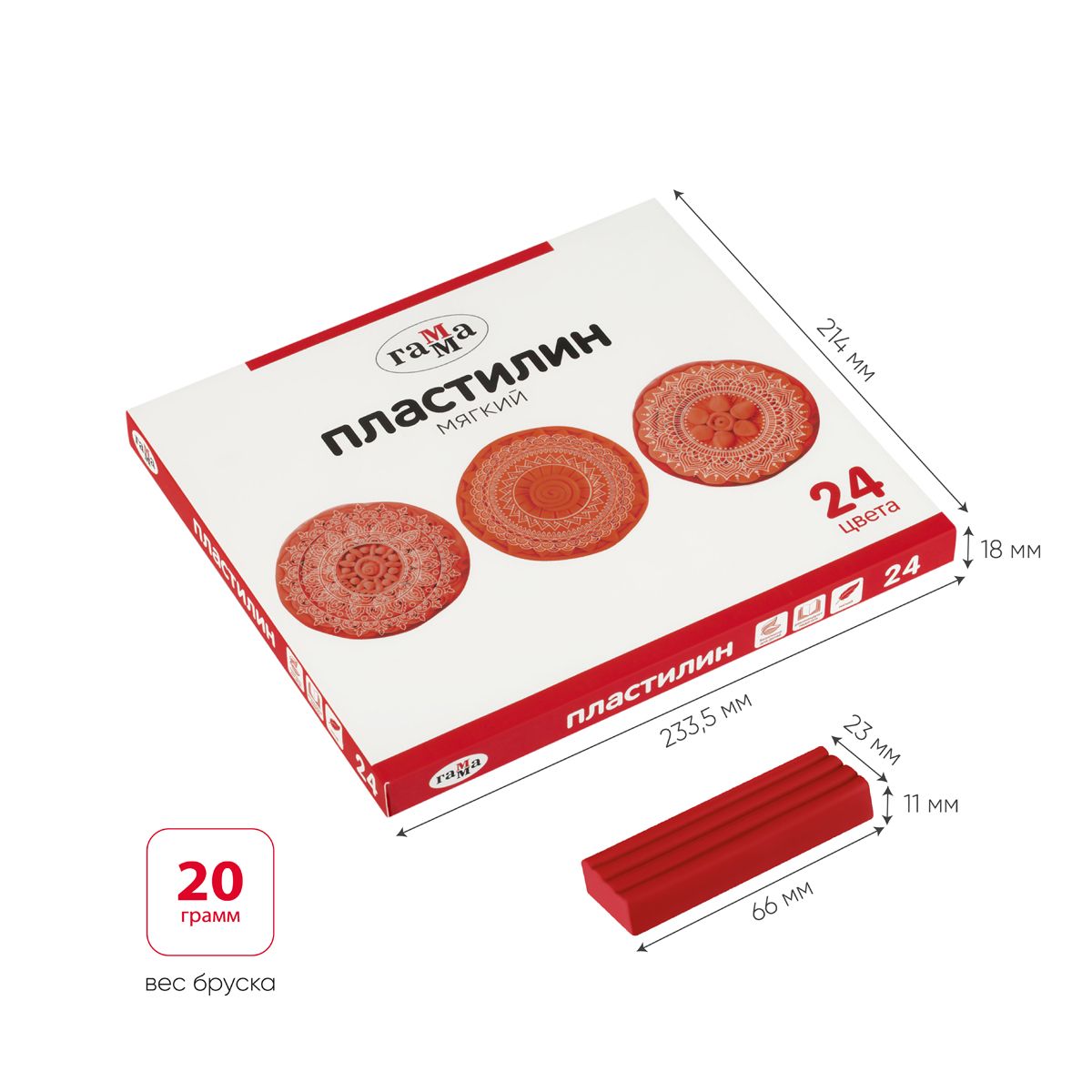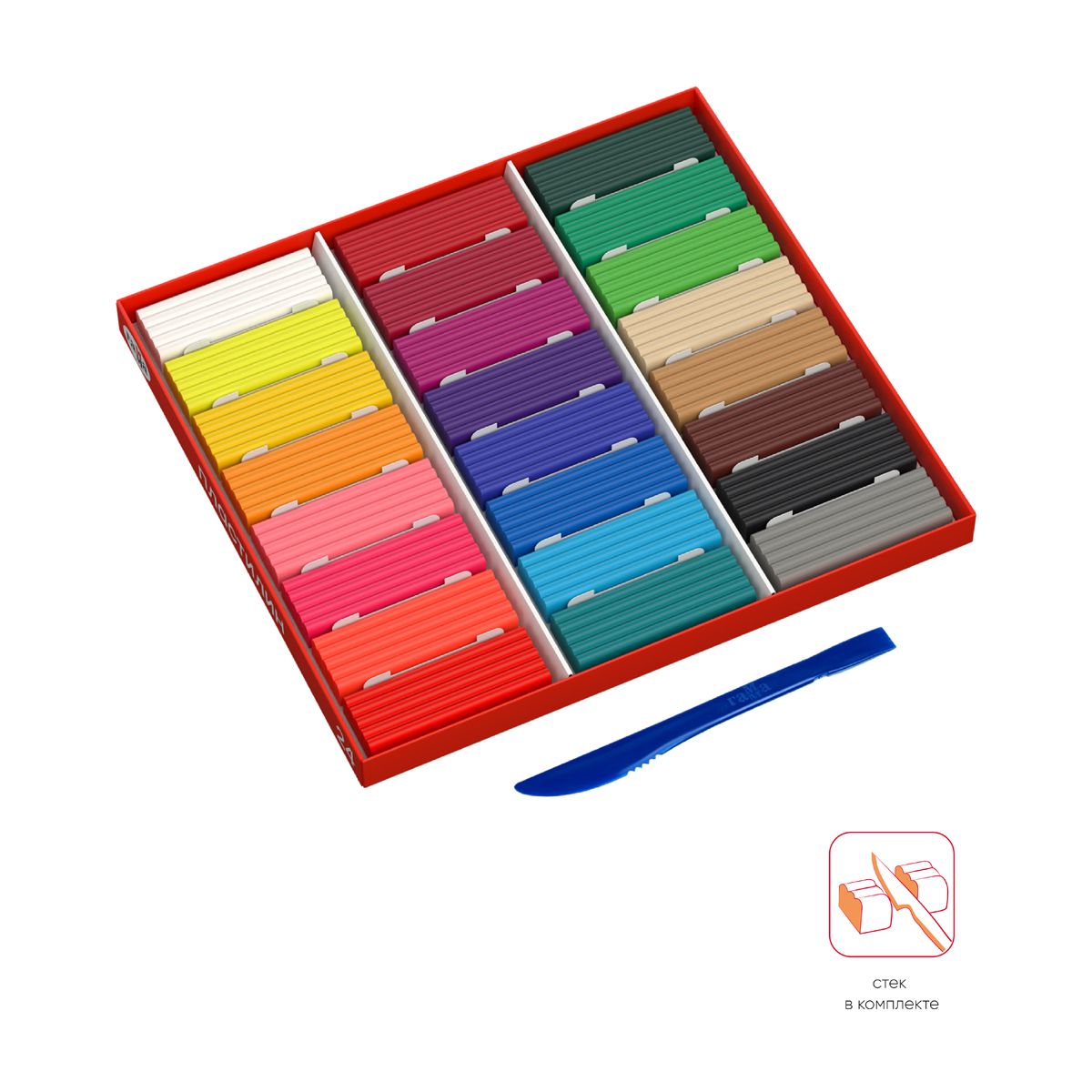 Пластилин Гамма, 24 цвета, 480г, со стеком, картон. упаковка