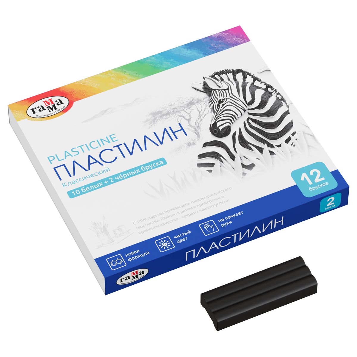 Пластилин Гамма "Классический", 10 белых+2 черных брус., 240г, со стеком, картон. упаковка