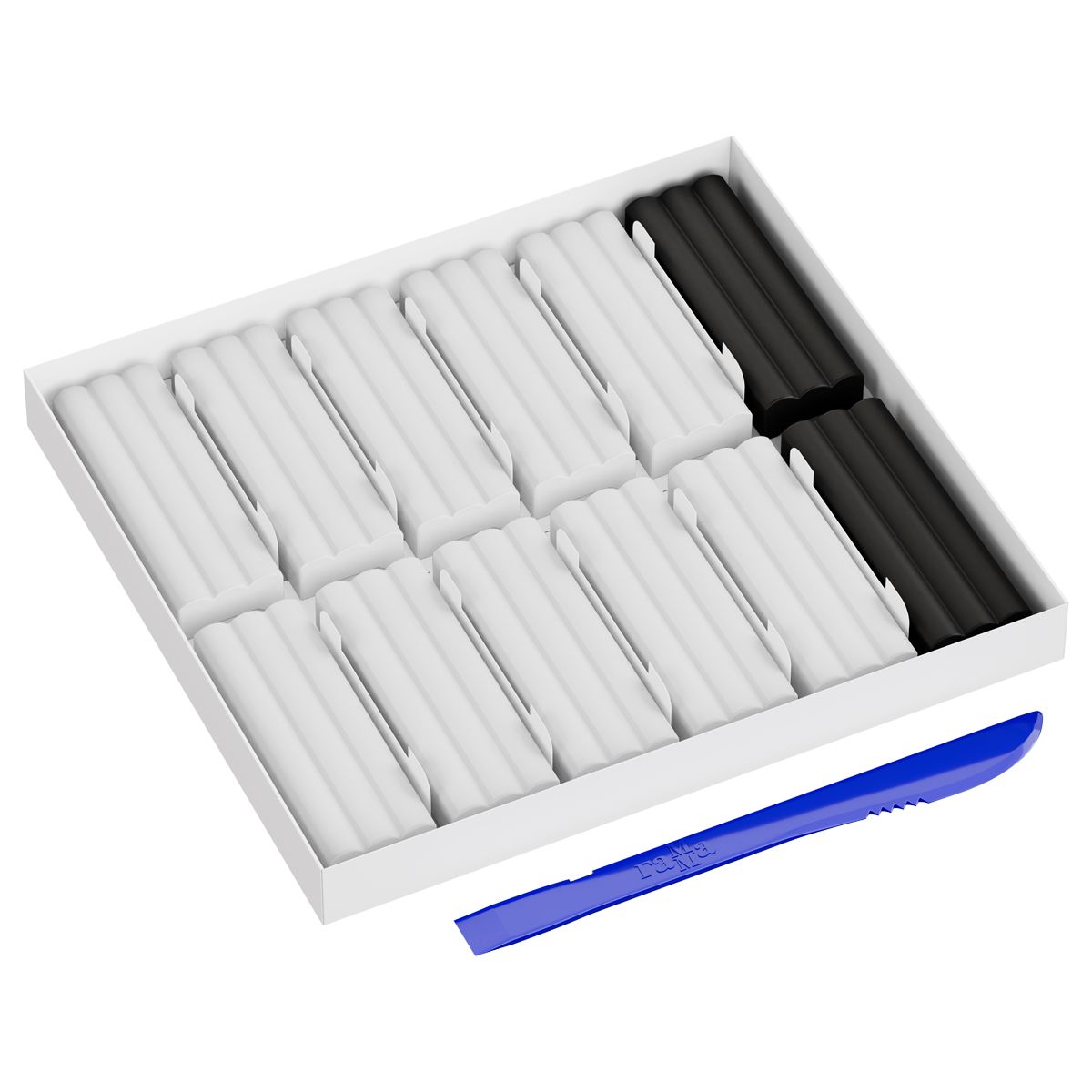 Состав набора: 10 белых брусков, 2 черных бруска.