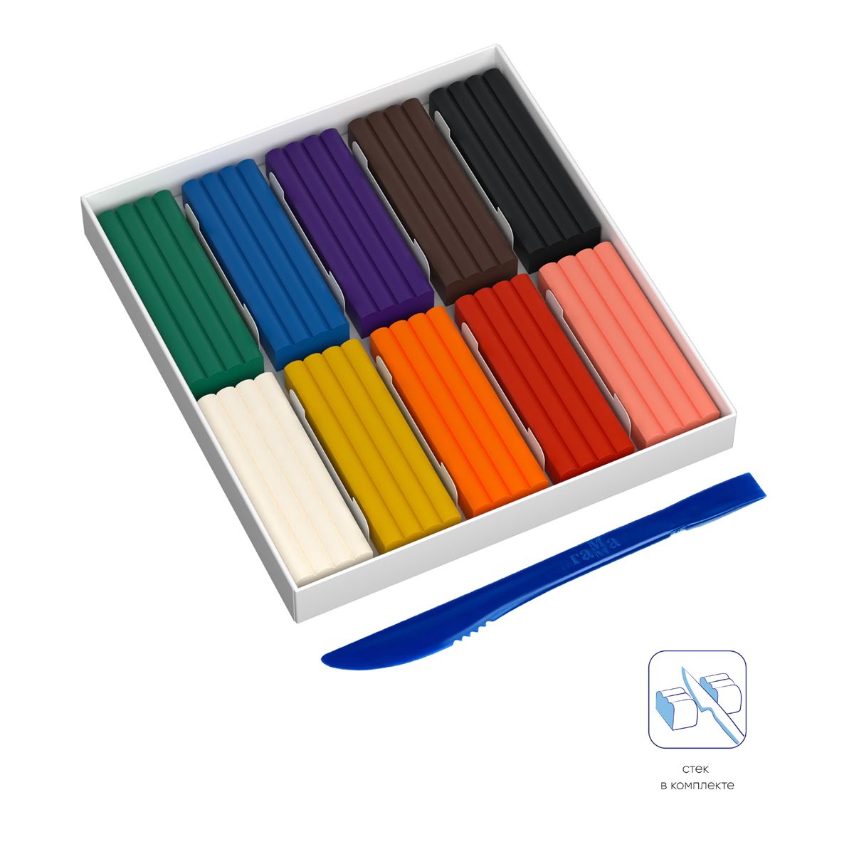 Пластилин Гамма "Классический", 10 цветов, 200г, со стеком, картон. упаковка