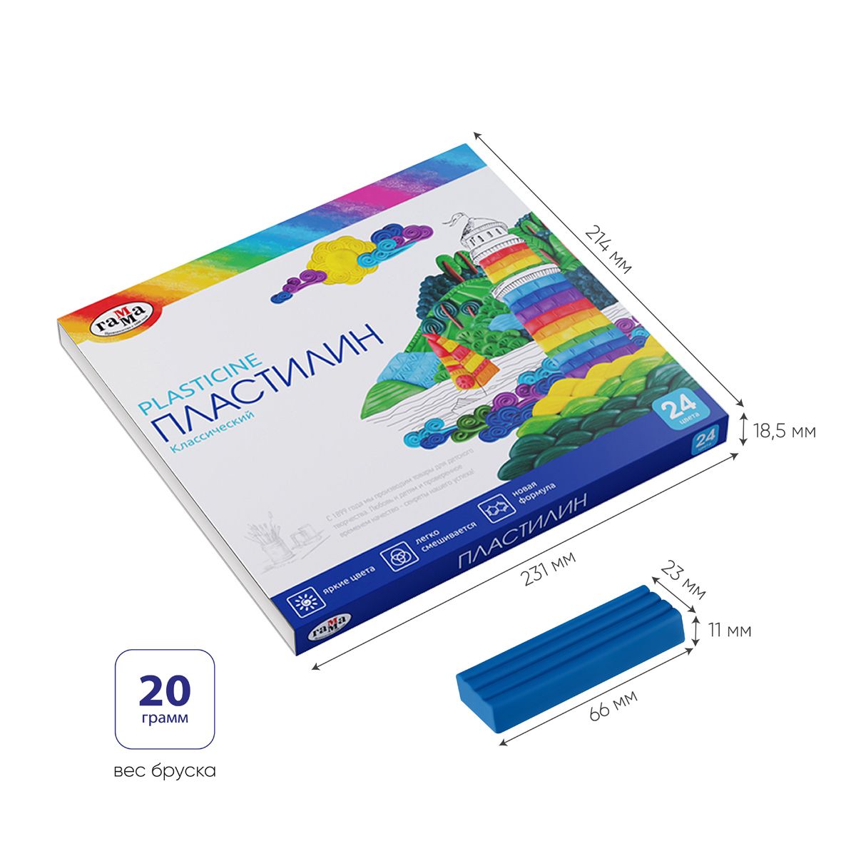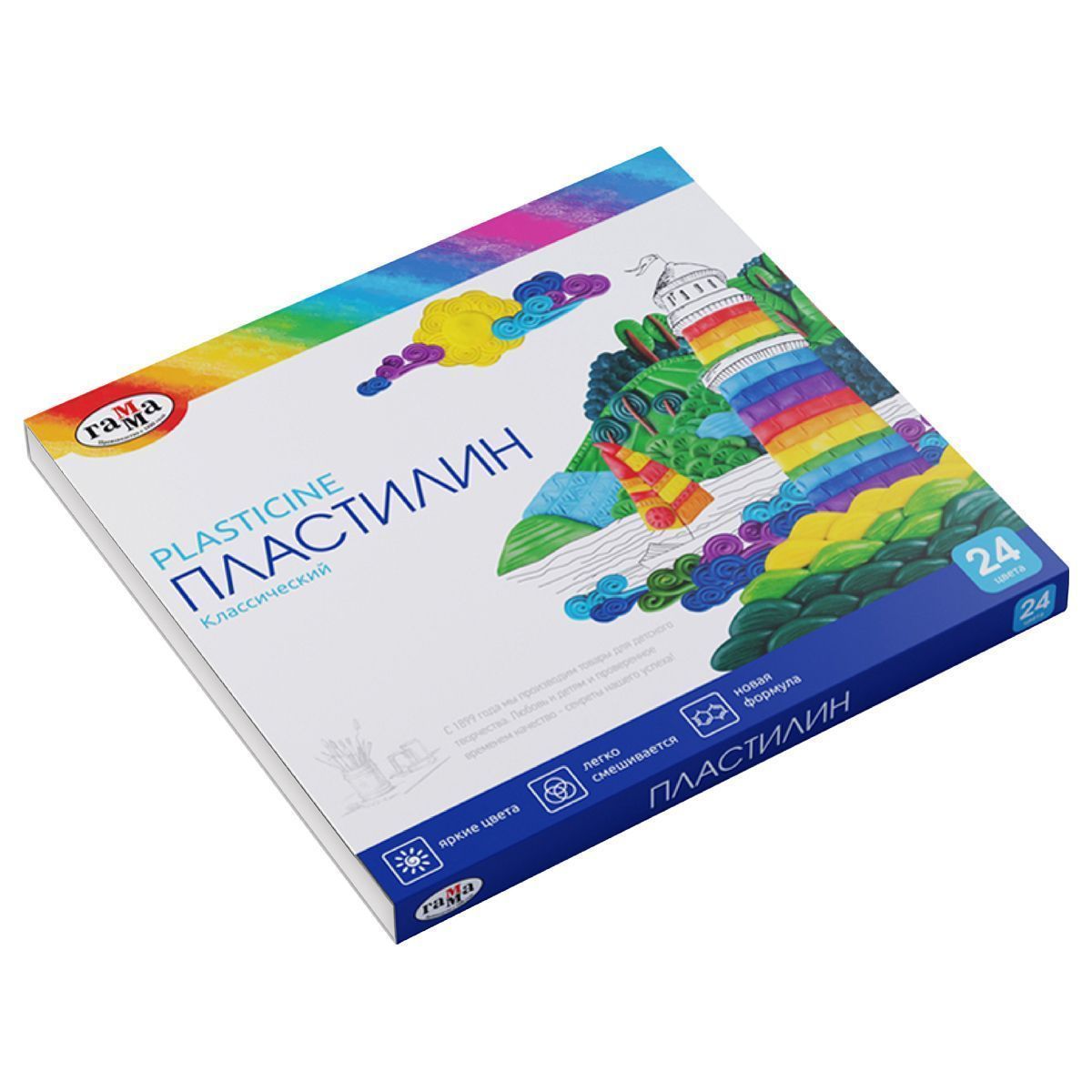 Пластилин Гамма "Классический", 24 цвета, 480г, со стеком, картон. упаковка