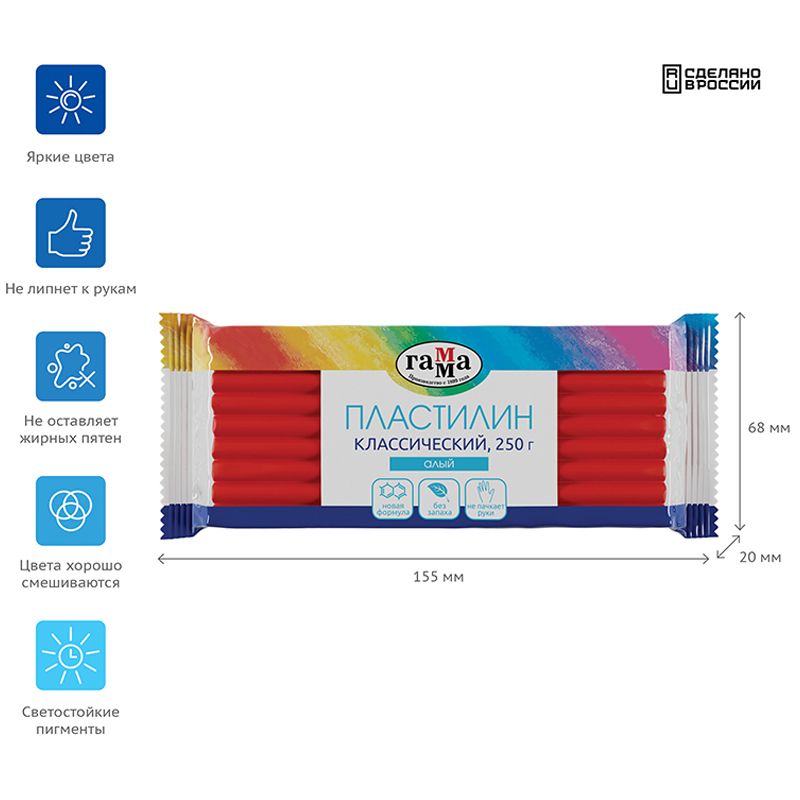 Пластилин Гамма "Классический", алый, 250г