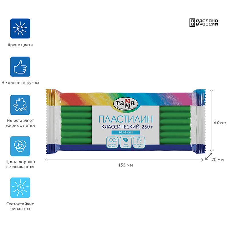 Пластилин Гамма "Классический", зеленый, 250г