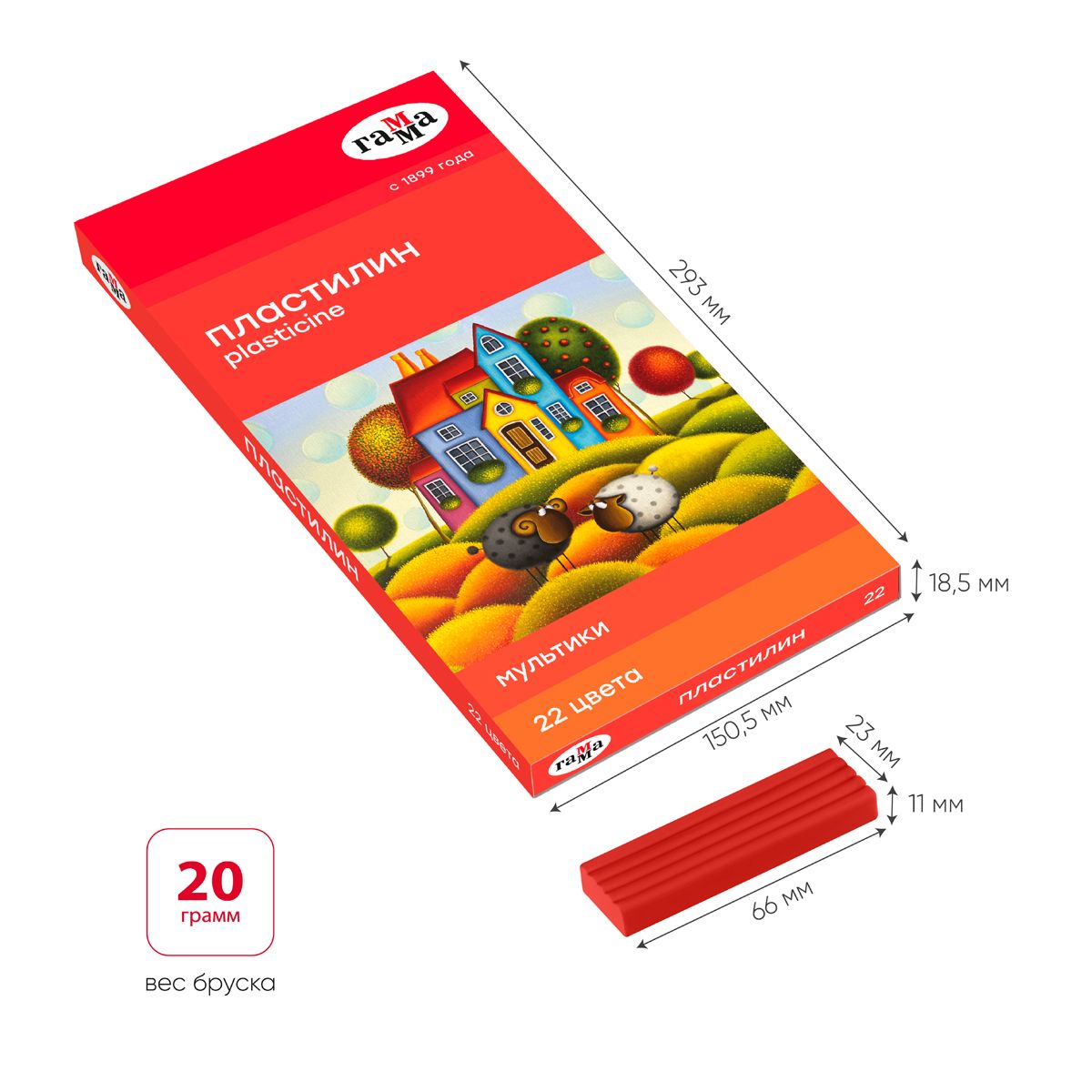 Пластилин Гамма "Мультики", 22 цвета, 440г, со стеком, картон. упаковка