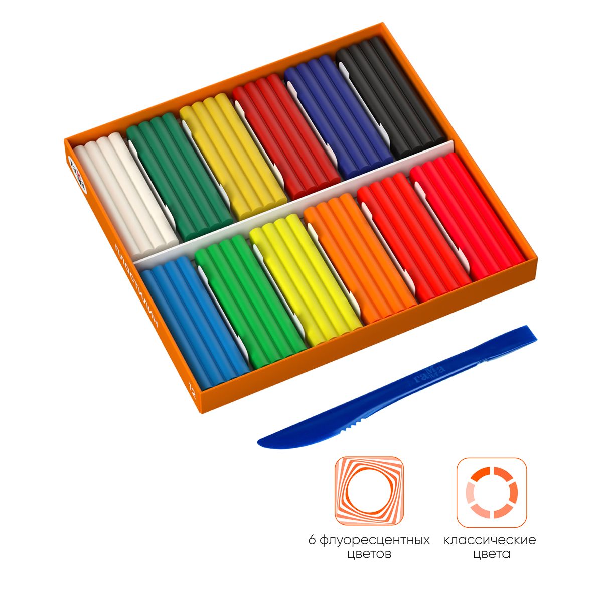 Пластилин Гамма "Оранжевое солнце", 12 цветов (6 классич., 6 флуор.), 168г, со стеком. картон. упаковка