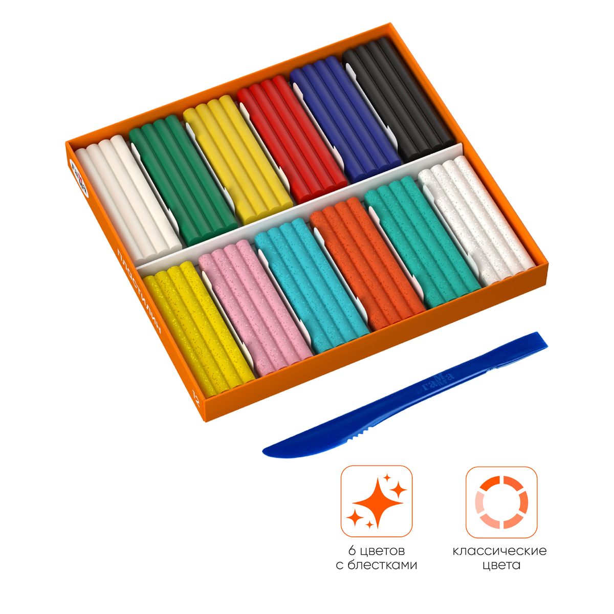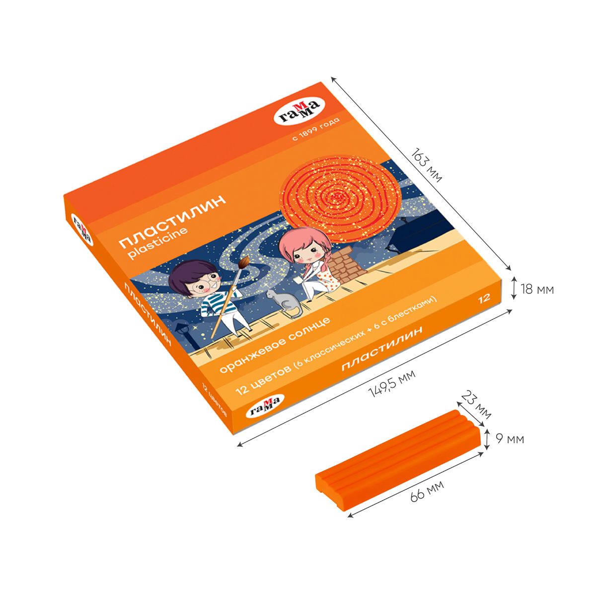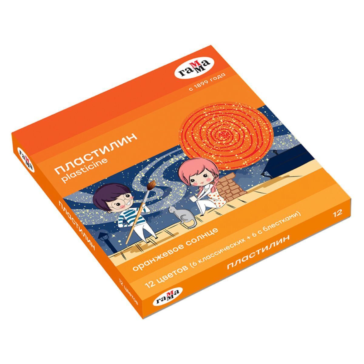 Пластилин Гамма "Оранжевое солнце", 12 цветов (6 классич., 6 с блестками), 168г, со стеком. картон. упаковка