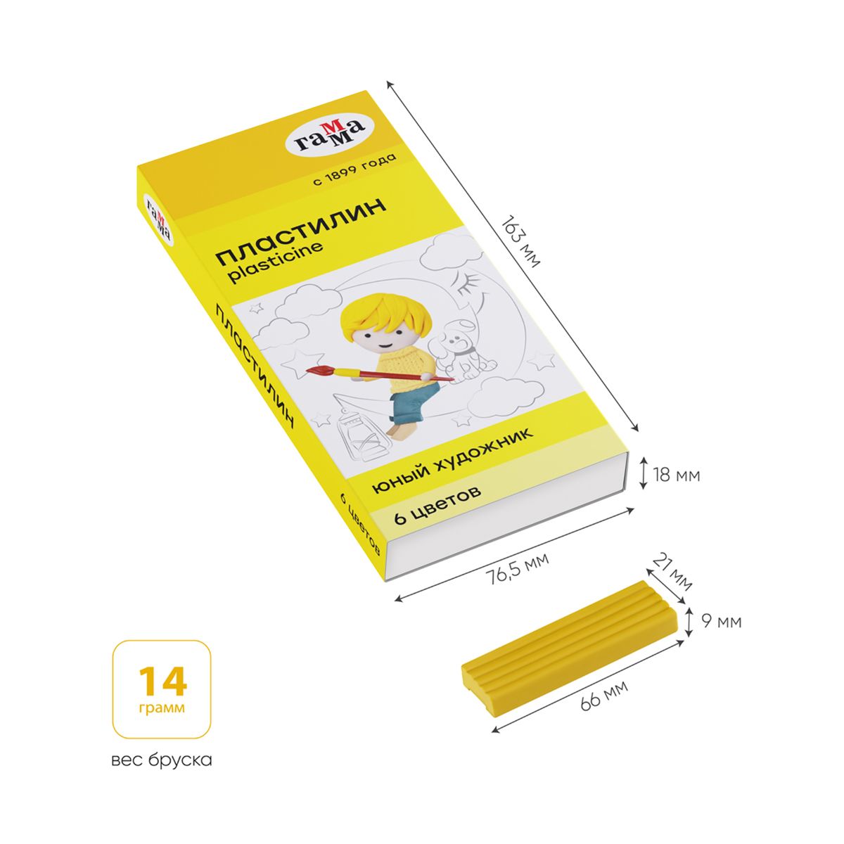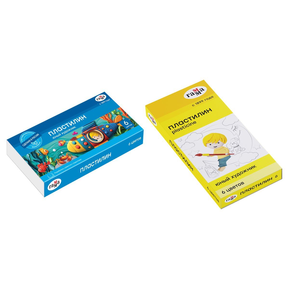 Пластилин Гамма "Юный художник" NEW, 06 цветов, 84г, со стеком, картон. упаковка