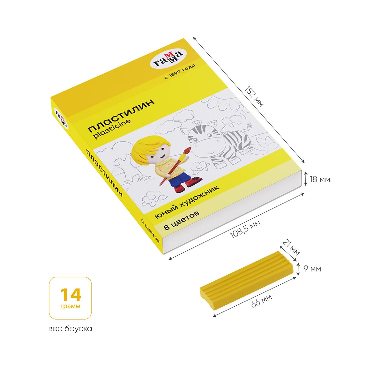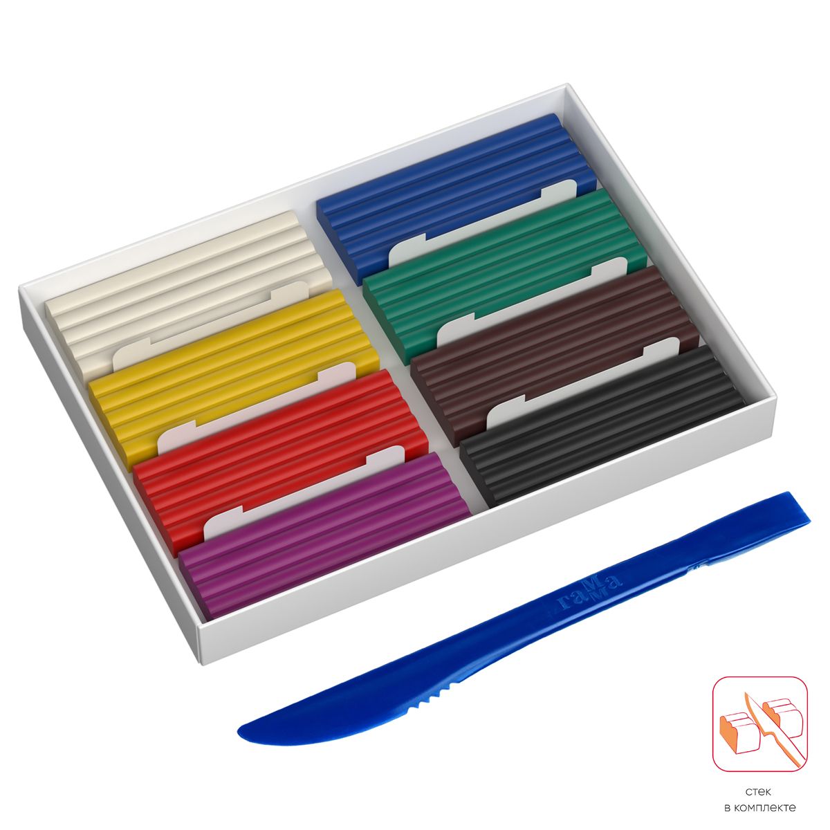 Пластилин Гамма "Юный художник" NEW, 08 цветов, 112г, со стеком, картон. упаковка