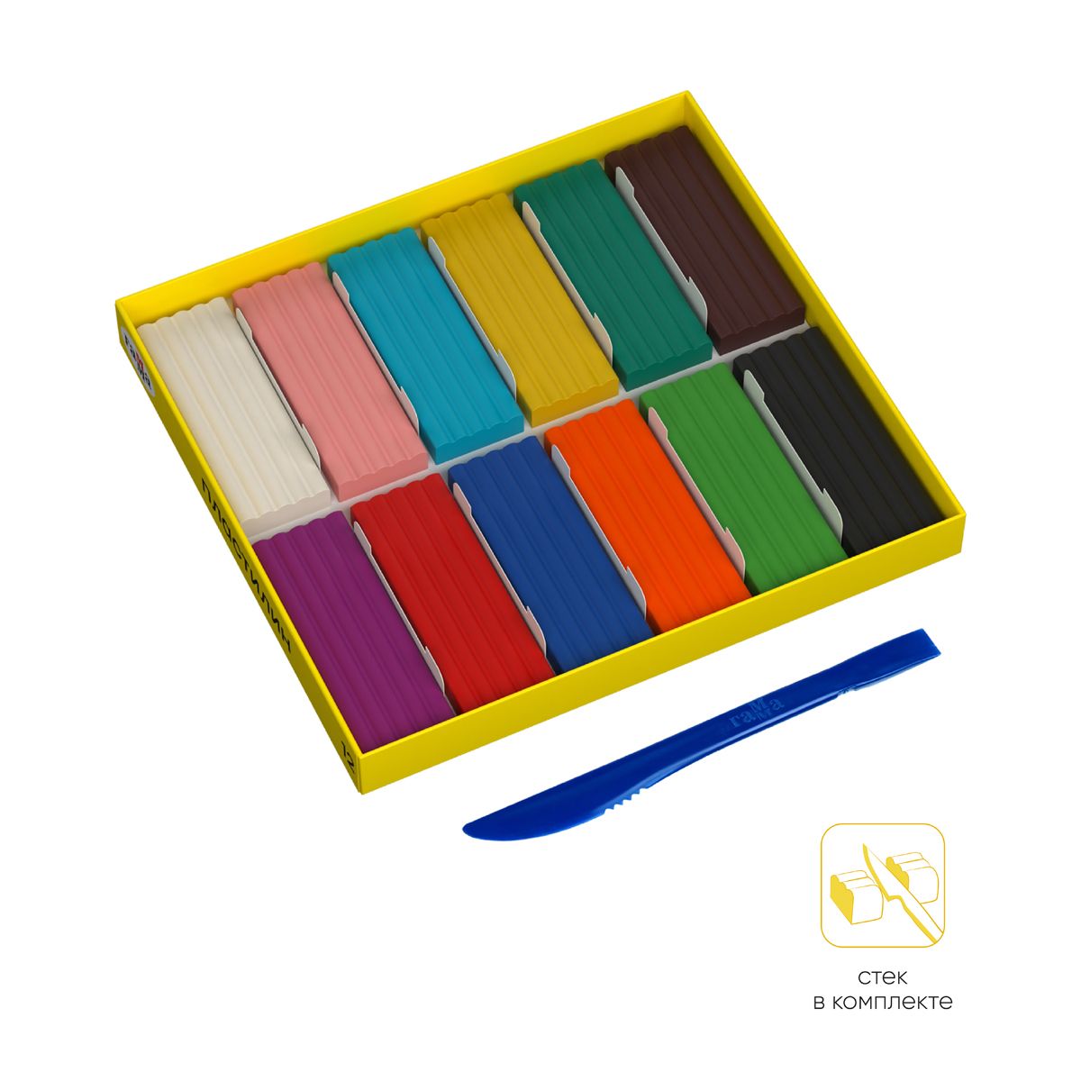 Пластилин Гамма "Юный художник" NEW, 12 цветов, 168г, со стеком, картон. упаковка