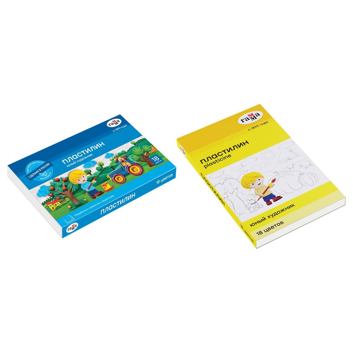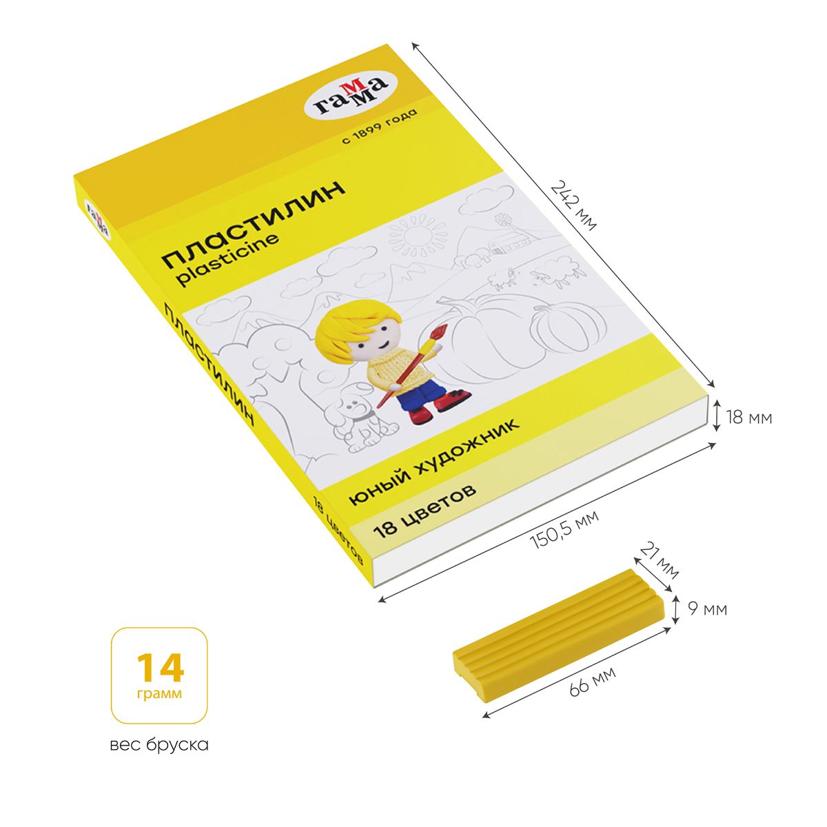 Пластилин Гамма "Юный художник" NEW, 18 цветов, 252г, со стеком, картон. упаковка