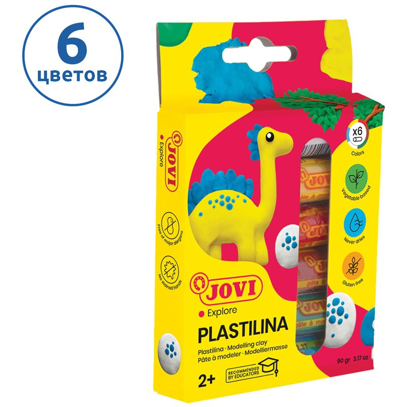 Пластилин JOVI, 06 цветов, 90г, растительный, картон, европодвес