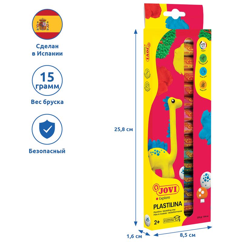 Пластилин JOVI, 15 цветов, 225г, растительный, картон, европодвес