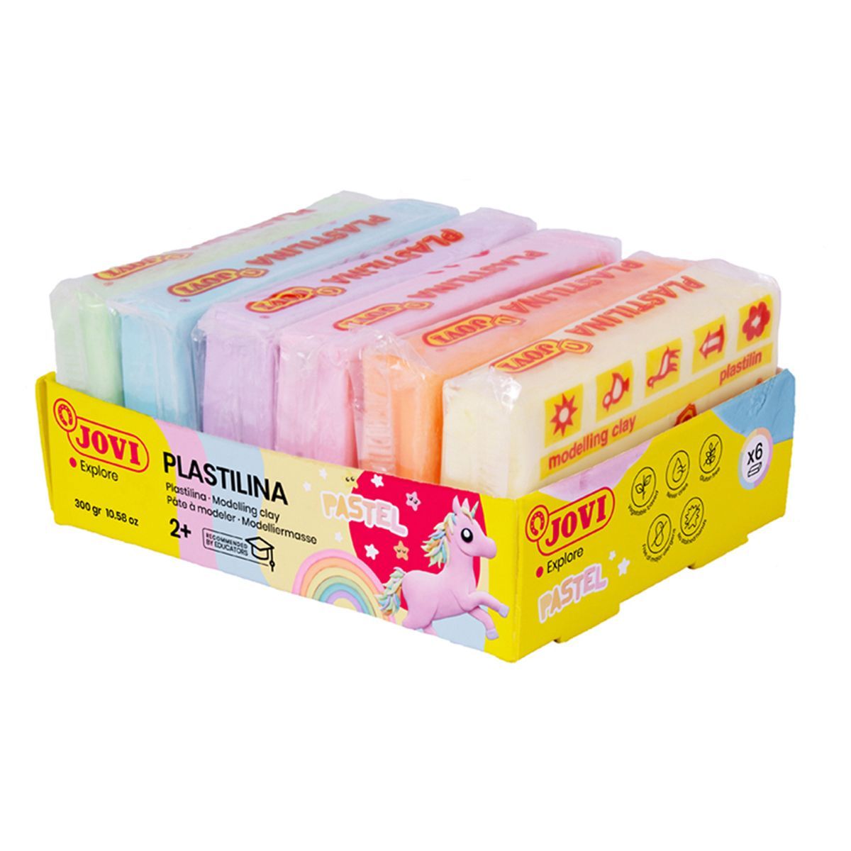 Пластилин JOVI, 6 пастельных цветов, 300г, растительный, картон