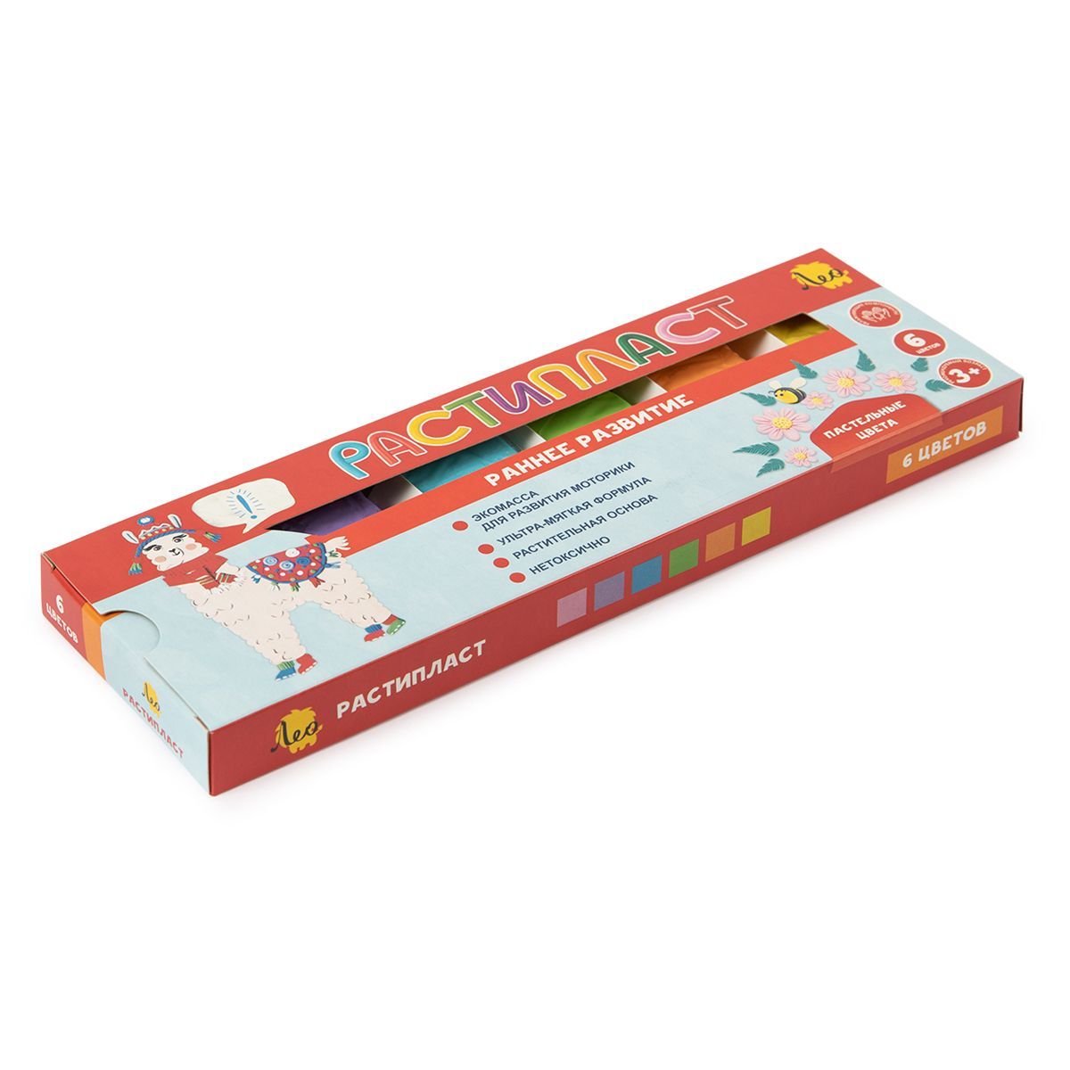 Пластилин Лео "Расти", 06 цветов (пастельных), растительный, 120г, картон. упаковка