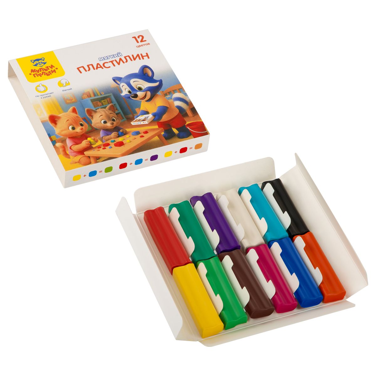 Пластилин Мульти-Пульти "Енот и друзья", 12 цветов, 120г, картон