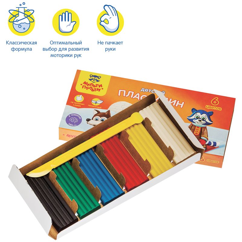 Пластилин Мульти-Пульти "Енот на Аляске", 06 цветов, 90г, со стеком, картон