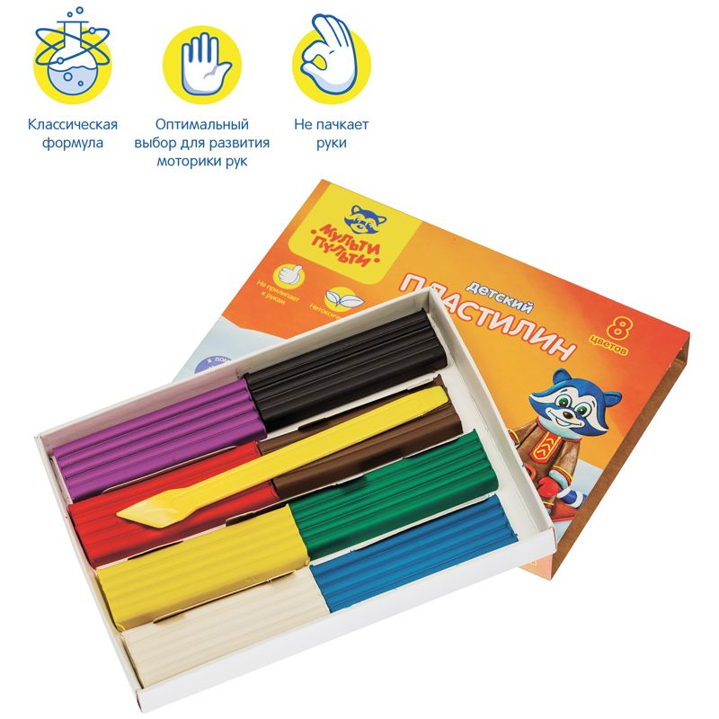 Пластилин Мульти-Пульти "Енот на Аляске", 08 цветов, 120г, со стеком, картон