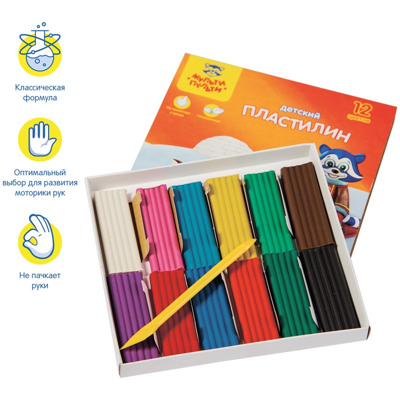 Пластилин Мульти-Пульти "Енот на Аляске", 12 цветов, 180г, со стеком, картон