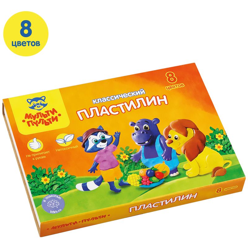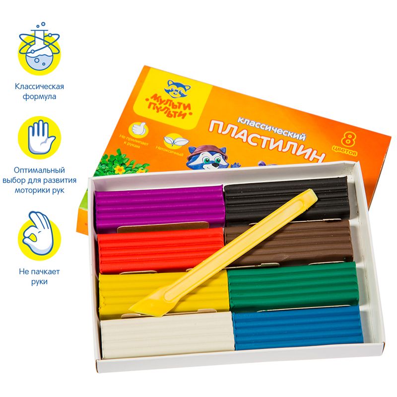 Пластилин Мульти-Пульти "Приключения Енота", 08 цветов, 160г, со стеком, картон
