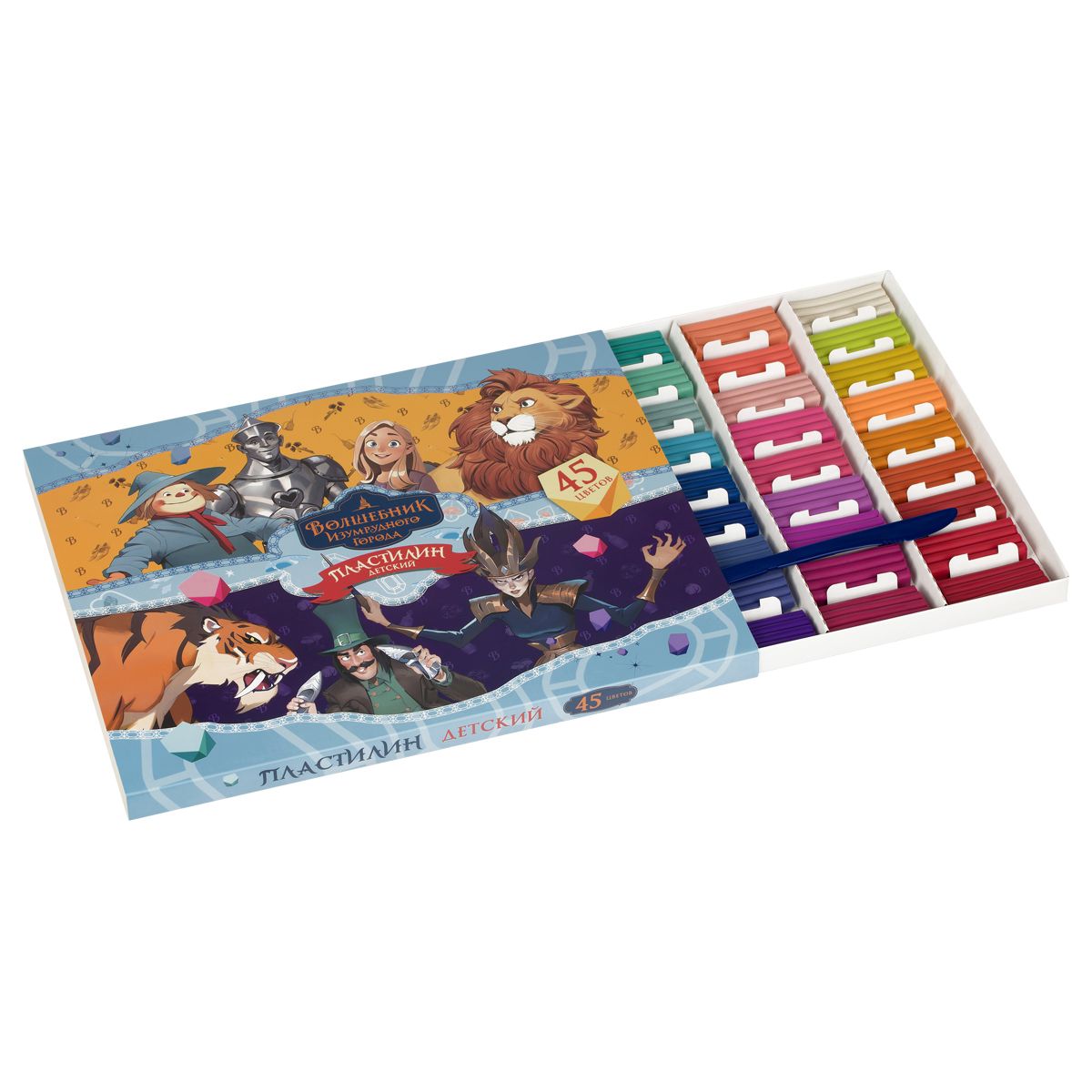 Пластилин Мульти-Пульти "Волшебник Изумрудного Города", 45 цветов, 630г, со стеком, картон. упаковка