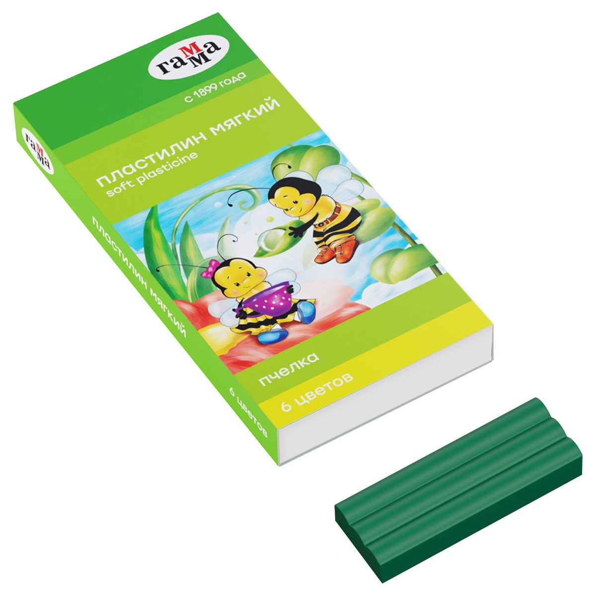 Пластилин восковой мягкий Гамма "Пчелка", 06 цветов, 90г, со стеком, картон. упаковка