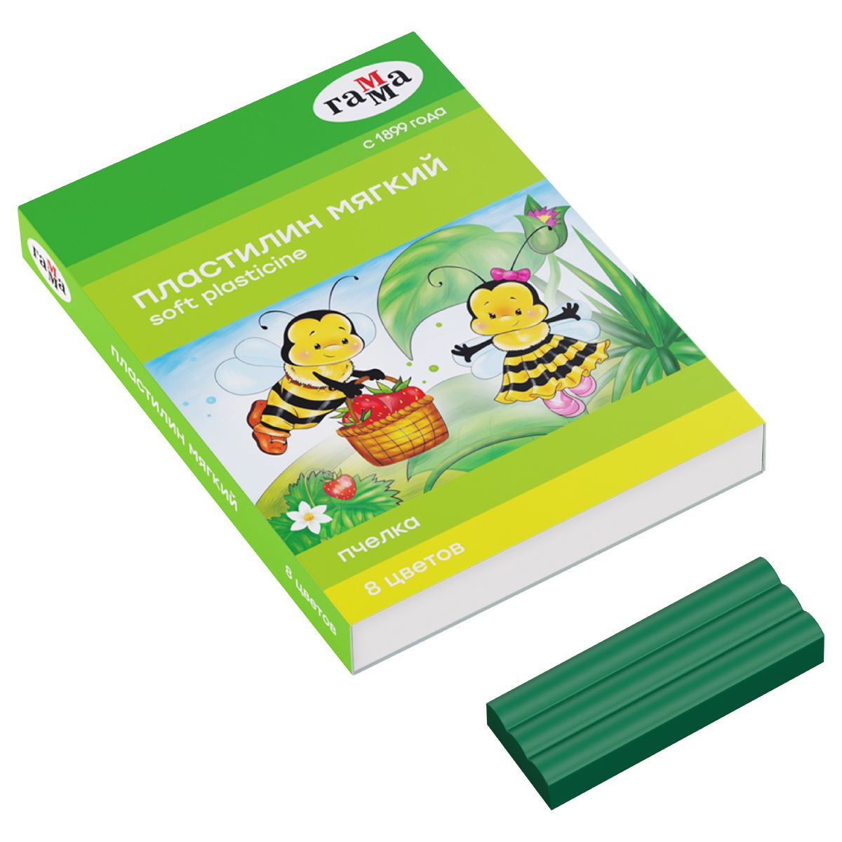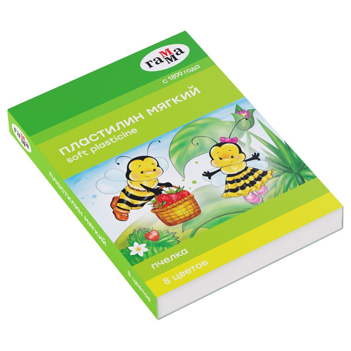 Пластилин восковой мягкий Гамма "Пчелка", 08 цветов, 120г, со стеком, картон. упаковка
