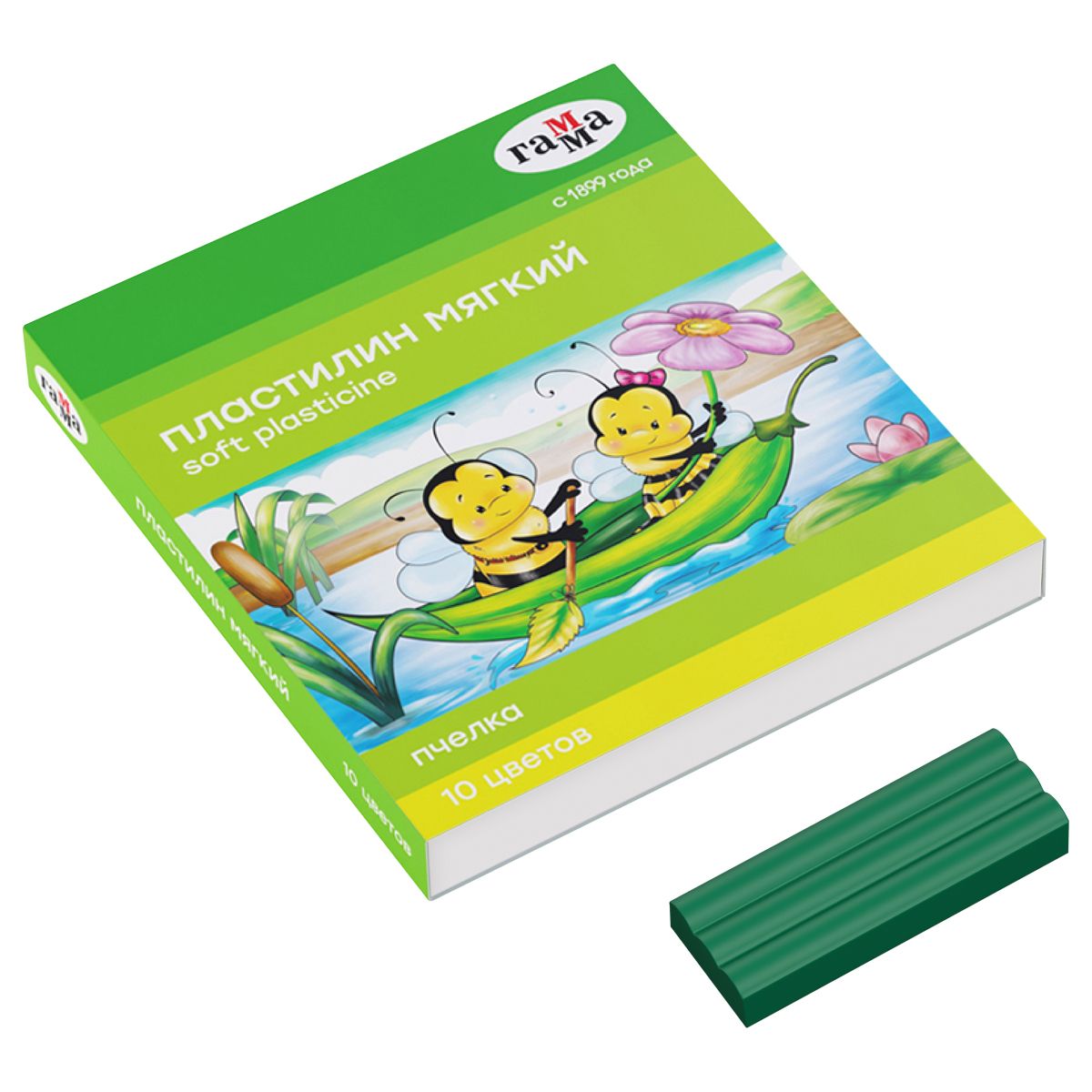 Пластилин восковой мягкий Гамма "Пчелка", 10 цветов, 150г, со стеком, картон. упаковка