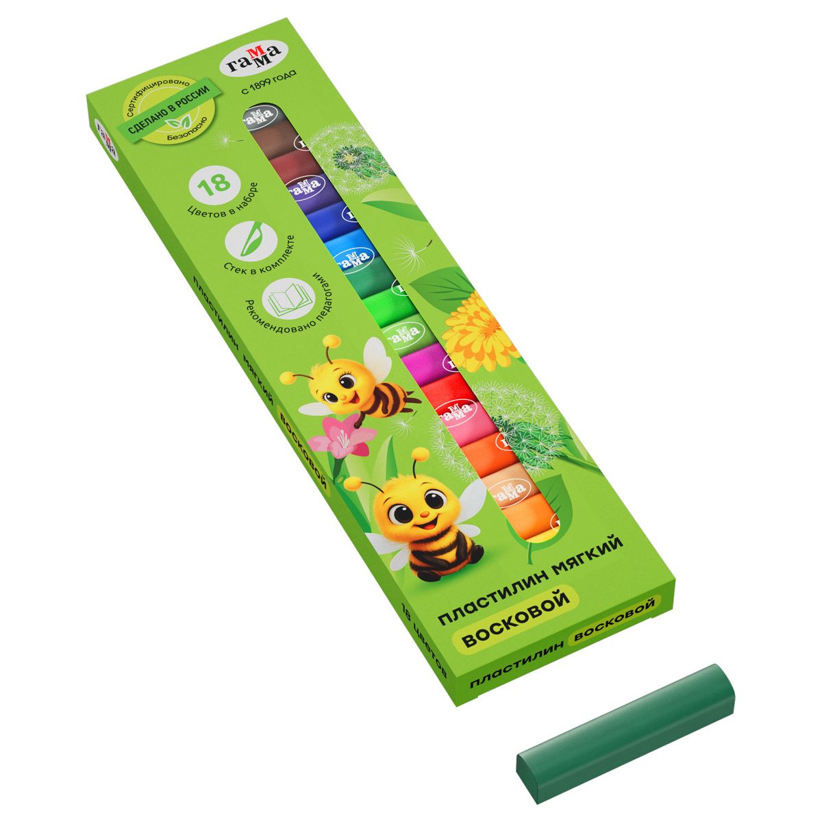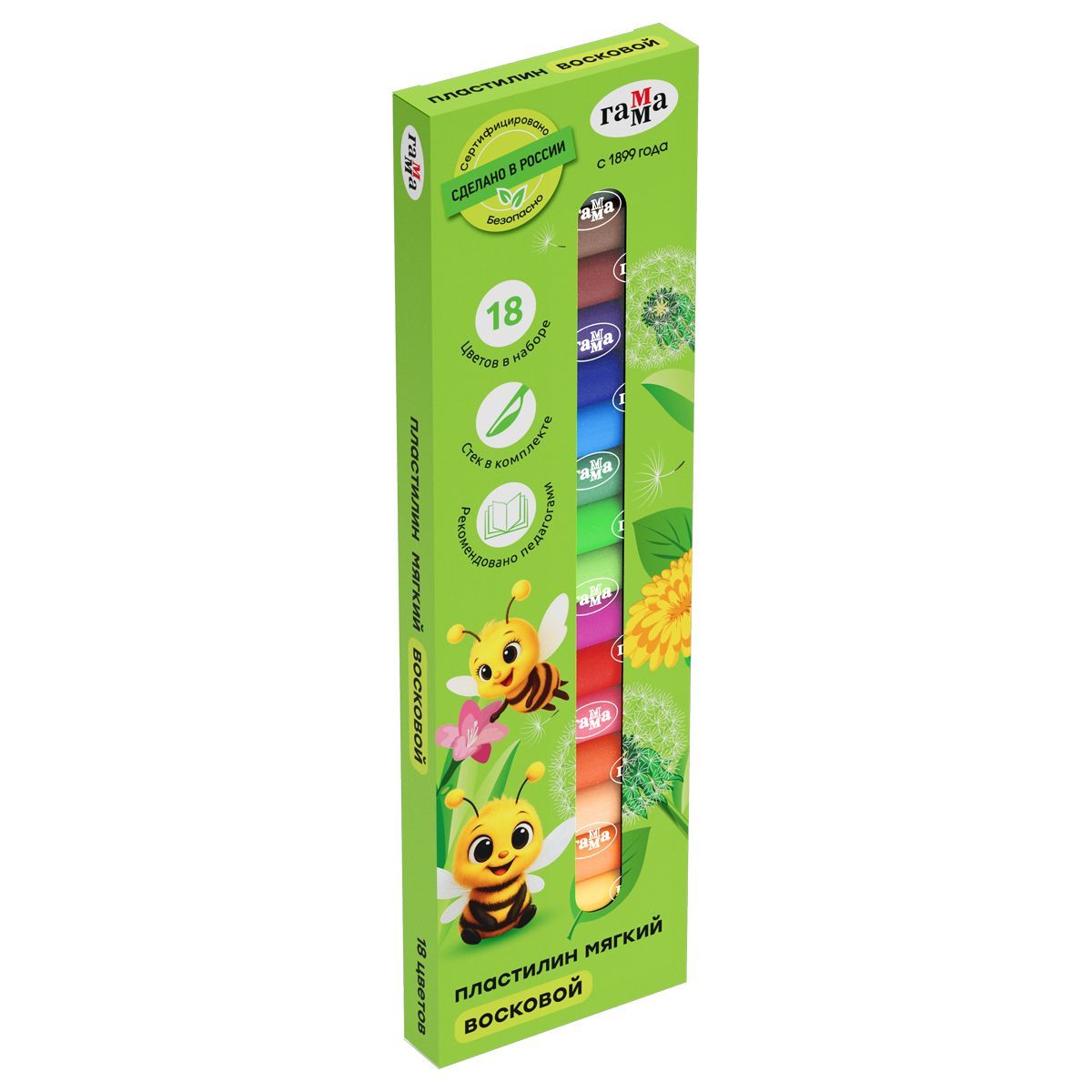 Пластилин восковой мягкий Гамма "Пчелка", 18 цветов, 216г, со стеком, картон. упаковка