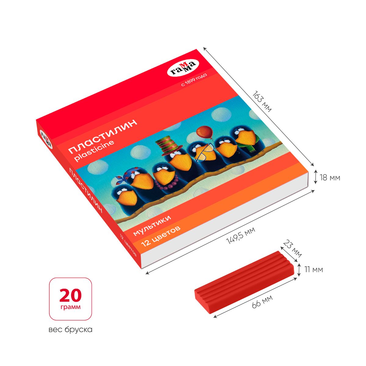 УЦЕНКА - Пластилин Гамма "Мультики", 12 цветов, 240г, со стеком, картон. упаковка (осн 262526)
