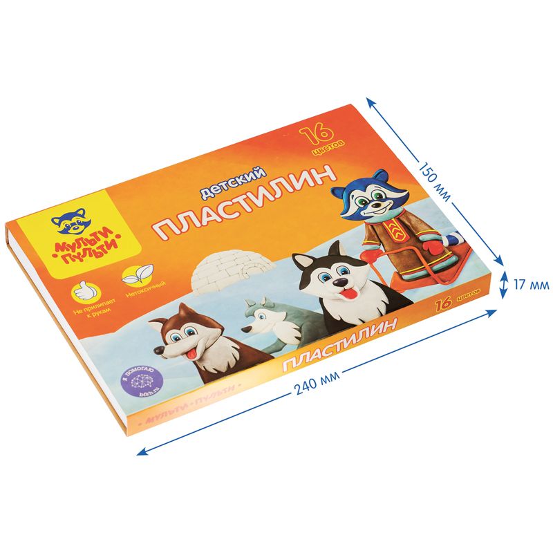 УЦЕНКА - Пластилин Мульти-Пульти "Енот на Аляске", 16 цветов, 240г, со стеком, картон